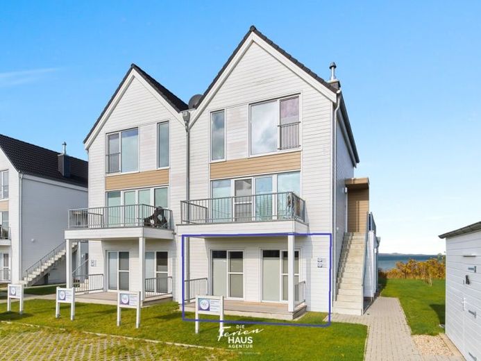 Freuen Sie sich auf ein atemberaubendes Panorama mit Blick auf die malerische Moole des Resorts. Diese (ca. 97 m² umfassende) ebenerdige Wohnung wurde mit geschmackvollen Möbeln im skandinavischen Stil hergerichtet. Beim Betreten entsteht durch die offene Wohngestaltung eine einladende Atmosphäre. Die Panoramafenster im Wohn-/Essbereich (ca. 26 m²) lassen diesen Bereich mit der Natur verschmelzen. Sie gelangen vom Flur in die zwei mit komfortablen Betten, großzügigem Stauraum sowie traumhaftem Ausblick aufs Wasser versehenen Schlafzimmer (je ca. 10 m²) . Ein großzügiges 10 m² Badezimmer (plus Infrarotsauna) ermöglicht Ihnen ebenfalls einen wundervollen Blick.
