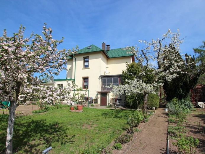 Das ist der Tipp für Immobiliensuchende, die das Besondere lieben. Die historische Villa befindet sich in Weinböhla’s bester Wohnlage. Das Einfamilienhaus mit ca. 153 m² Wohnfläche, welche sich auf 5 Zimmer verteilt, ist voll unterkellert. Das Dachgeschoss bietet Ihnen eine zusätzliche Ausbaureserve. Das Dach ist ganz solide mit hochwertigem PREFA-Dachsystem eingedeckt.