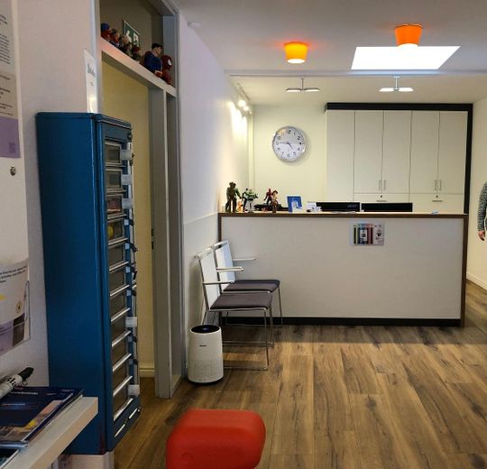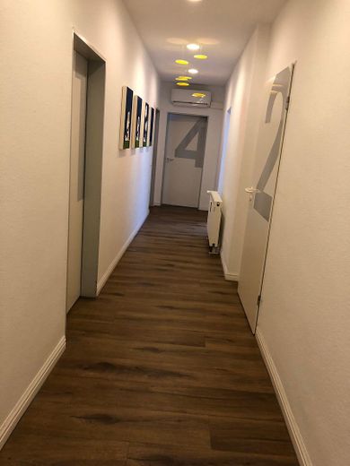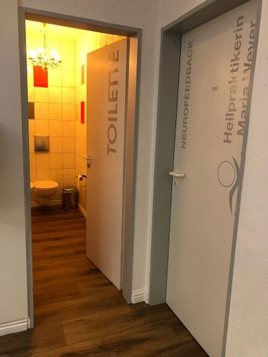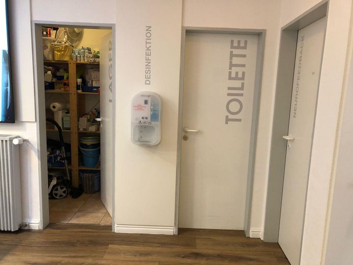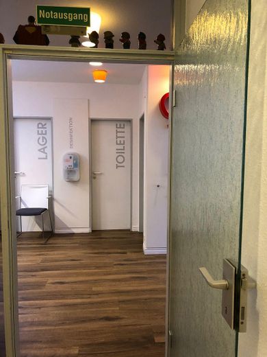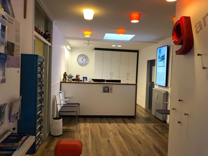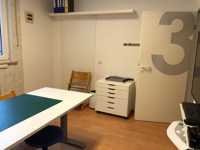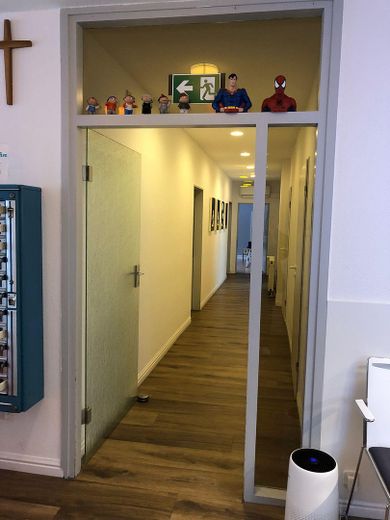 5 Behandlungsräume (davon einer besonders groß), 2 Toiletten, eine Anmeldung/Empfangshallle, eine Küche/Pausenraum, ein Kellerraum