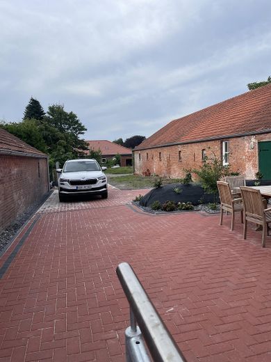 Direkt am Haus ist der gepflasterter KFZ-Stellplatz, zu erreichen über den Blaufärberweg