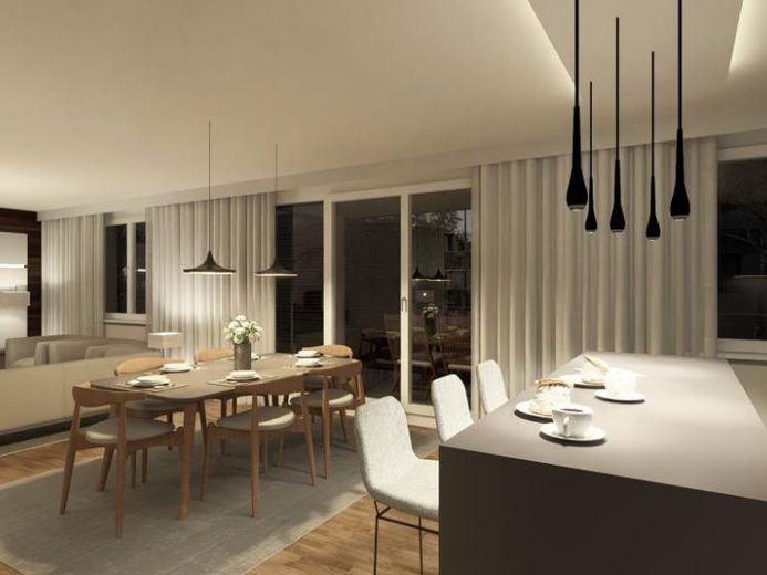 Das Herzstück der Wohnung ist der fast 44?m² große Wohn-, Ess- und Kochbereich. Großflächige Fenster mit Raffstore Anlagen sorgen für angenehme Helligkeit und eine einladende Atmosphäre. Die angrenzende Terrasse mit hochwertiger Wintergartenlösung sowie Ihr eigener Gartenanteil bieten Ihnen zusätzlichen Freiraum – perfekt zum Entspannen bei jeder Witterung.
