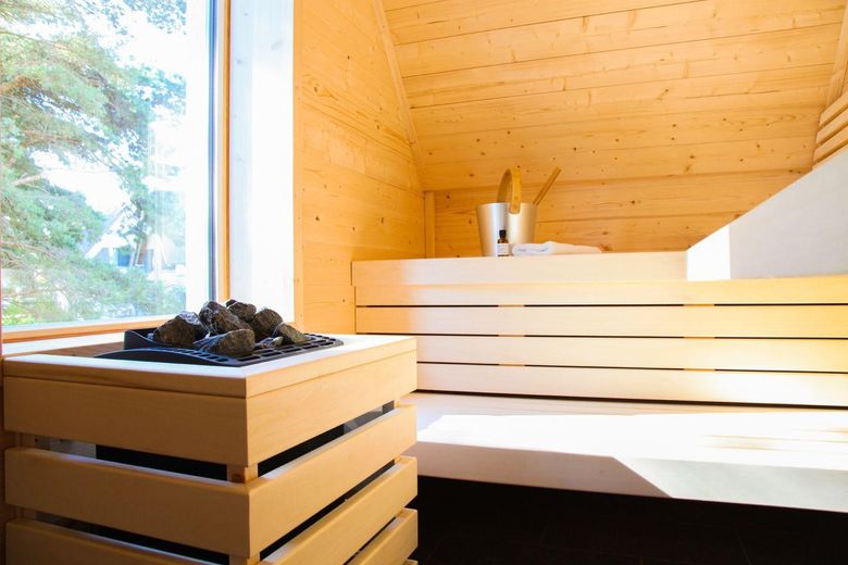Im Erdgeschoss erwartet Sie ein offenes Wohn-/Koch-/Esskonzept mit direktem Zugang zur Terrasse und großem Garten inklusive eigenem Kiefernwäldchen. Im Dachgeschoss befindet sich u. a. der Wellnessbereich mit integrierter Sauna – ein Highlight, das die Immobilie auch im Saisonrandbereich attraktiv macht.
