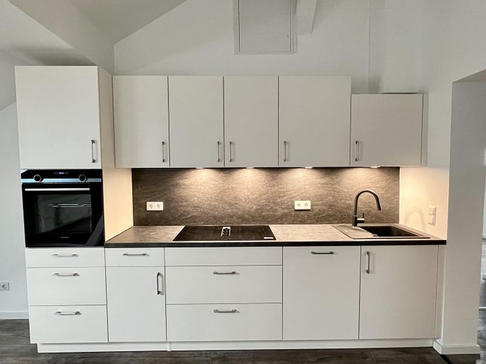 Eine massangefertigte Marken-Einbauküche mit modernen Elektrogeräten steht zur Verfügung. Ein Induktionskochfeld mit integriertem Dunstabzug (Siemens), Backofen und Spülmaschine (Siemens) sowie eine Kühl-Gefrierkombination (Bosch) bieten jeglichen Komfort.