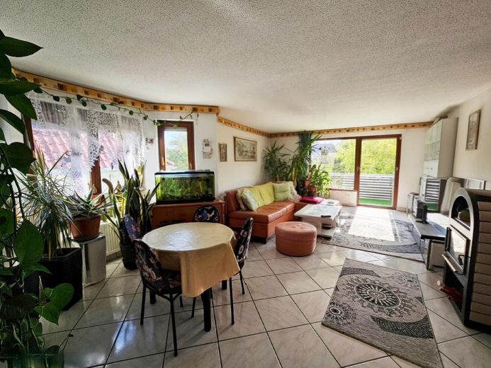 Herzstück der Wohnung ist das großzügige Wohn- und Esszimmer mit Kaminofen, das nicht nur viel Platz bietet, sondern auch zu entspannten Stunden in wohliger Atmosphäre einlädt. Von hier aus gelangen Sie auf den sonnigen Balkon mit Süd-West-Ausrichtung – perfekt, um den Feierabend in Ruhe zu genießen.