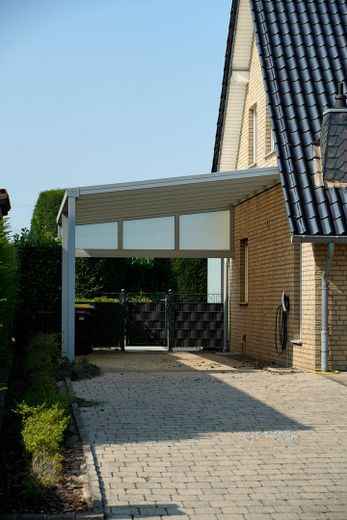 • überdachtes Carport (Länge 6,95m; Höhe Hausseite 3,30m; Höhe Grenzseite 2,85m); 11KW Wallbox (Tesla) + Wechselstromanschluss