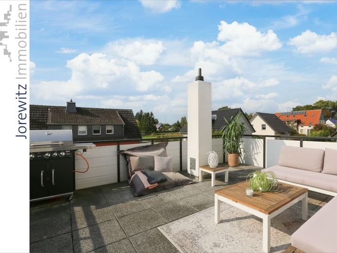 Charmante, sanierte Doppelhaushälfte mit Dachterrasse, Garten und zwei Stellplätzen.8 Zimmer, Küche, 2 Bäder, Dachterrasse, Terrasse und Garten, ca. 179 m² Wohnfläche im Erd- und Obergeschoss.