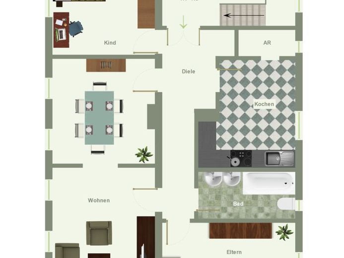 Die harmonisch aufgeteilte 4- Zimmer-Wohnung bietet eine Wohnfläche von 100,06 m². Die großzügige Wohnung begrüßt Sie im einladenden Entrée mit hohen Decken. Mit Panoramablick in den hauseigenen Garten finden Sie die große Wohnküche mit direkt angrenzendem Vorratsraum auf insgesamt 18,5 m². Das Badezimmer mit einer Gesamtgröße von 6,20 m² wurde vor einigen Jahren bereits für Menschen mit Beeinträchtigung umgestaltet und bietet neben der üblichen Sanitärausstattung auch eine barrierefreie Dusche.