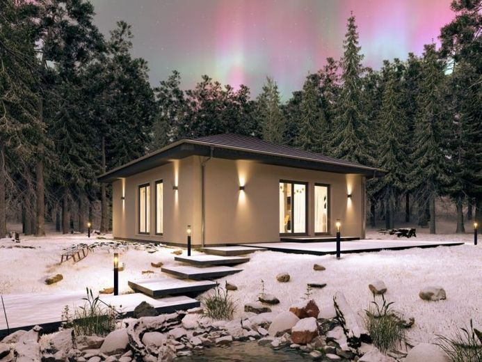 Der Tiny Single Bungalow 3 beweist, dass komfortables Wohnen auf kleiner Fläche möglich ist. Dieses durchdachte Wohnkonzept richtet sich besonders an Singles und Paare, die sich auf das Wesentliche konzentrieren möchten, ohne auf maximalen Komfort zu verzichten. Ein besonderes Highlight des Bungalows mit einer Wohnfläche von nur 73 m² ist der offene, lichtdurchflutete Wohn-Ess-Bereich, der direkt mit der angrenzenden Küche verbunden ist. Die offene Gestaltung und die fließenden Übergänge schaffen ein angenehmes Raumgefühl. Das kompakte Bad mit Dusche und WC fügt sich perfekt in das Gesamtkonzept ein, während der Hauswirtschaftsraum ausreichend Platz für moderne Technik bietet - für ein zeitgemäßes Wohnen mit MEHR an Komfort. Bodentiefe Fenster sorgen nicht nur für viel Licht im Wohn-Ess-Bereich, sondern ermöglichen auch den direkten Zugang zur Terrasse.