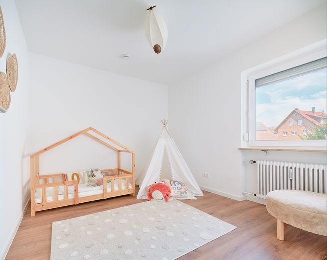 Die Wohnung befindet sich in ruhiger und familienfreundlicher Lage von Gebersheim. Einkaufsmöglichkeiten, Schulen, Kindergärten sowie Anbindungen an den öffentlichen Nahverkehr sind in wenigen Minuten erreichbar.