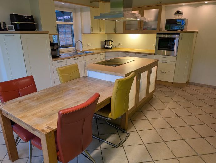 - Große Küche mit Kücheninsel und direktem Zugang zum modernen Sommergarten