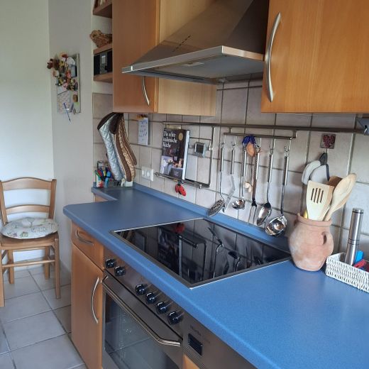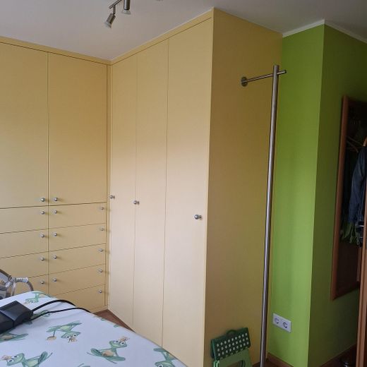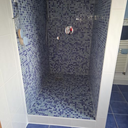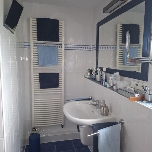 Alle Fenster haben elektrische Rollläden (außer Dachflächenfenster). Das Wohnzimmer hat zur Gartenseite ein 3 m breites Fenster in Form eines Hebe-/Schiebeelementes und eine Tür zur Seite und damit zur Garage. Sehr angenehm ist, dass sowohl Bad als auch Gäste-WC Fenster haben. Ca. 2005 wurde aus einem Kinderzimmer ein Ankleidezimmer mit Einbauschränken rundherum. Das ausgebaute Dach ist voll nutzbar und schön groß. Es können aus diesem Raum leicht 2 gemacht werden. 2007 wurde das Bad umgebaut, eine begehbare große Dusche eingerichtet und auf die Badewanne verzichtet (lässt sich wieder zurückbauen). 2012 habe ich in der 1. Etage Bambus-Parkett verlegen lassen.