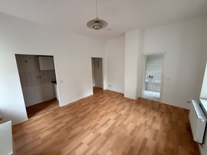 Die Wohnung ist aufgeteilt in ein helles Wohnzimmer mit einer kleinen Kochnische, wo bereits eine Pantryküche für Sie eingabut wurde. Das Tageslichtbad bietet Platz für eine Badewanne und Waschmaschine.