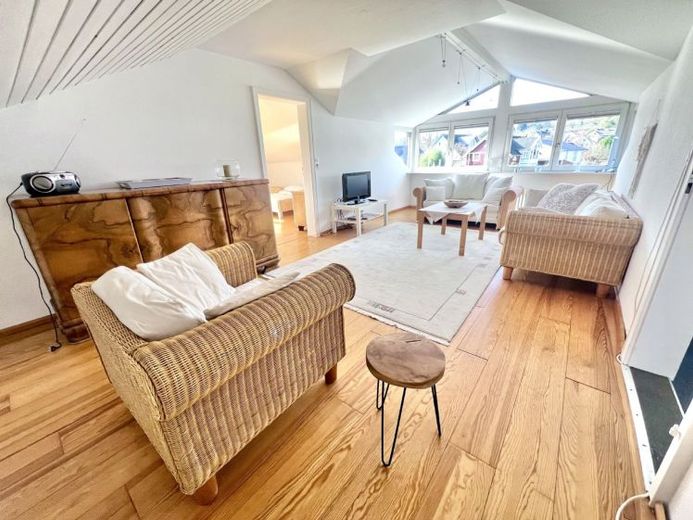 Diese gemütliche 2,5 Zimmer DG Wohnung befindet sich im 1.OG eines gepflegten Zweifamilienhauses und hat ca. 50 m² Wohnfläche. In der Wohnung befinden sich der Wohn- und Essbereich mit Zugang zum Schlafzimmer und dem Süd-Balkon, mit einem herrlichen Blick in die Natur, die Küche, das Tageslichtbad, Abstellraum. Das Tageslichtbad ist gefliest und mit WC, Badewanne und Handwaschbecken ausgestattet. Zu dieser Wohnung gehört ein Keller, ein gemeinschaftlich genutzter Wasch- u. Trockenraum, ein Pkw Stellplatz