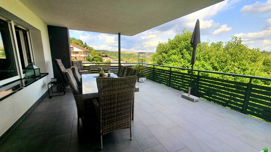 Von beiden Zimmern aus gelangt man auf die überdachte XXL-Terrasse (ca. 30qm), die mit seinem atemberaubenden Weitblick überzeugt. Hier fühlt man sich direkt wohl und genießt Wohlfühlstunden mit Gästen und Familile durch die Überdachung das ganze Jahr.