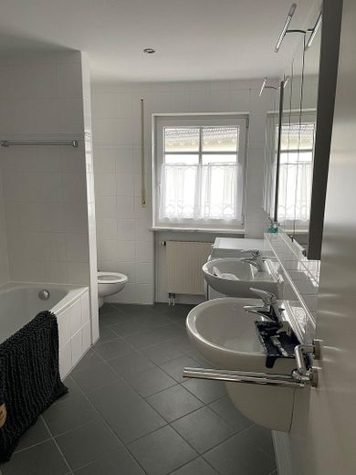 •Badezimmer mit Wanne, Dusche und Waschtrockner