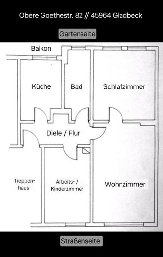 Die Wohnung liegt mitten in der Innenstadt von Gladbeck, in einer Zone 30, an einem geräumigen Wendehammer am Ende einer Sackgasse.