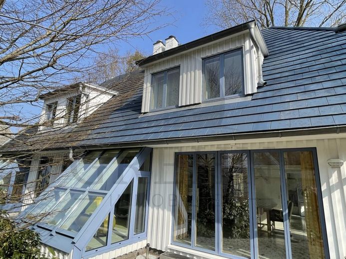 Schwedenhausstil, Holzrahmenbauweise, Sprossenfenster Alu/Holz, 3fach verglast, Dusche und Badewanne, 46qm Terasse, Glasfaseranschluss,