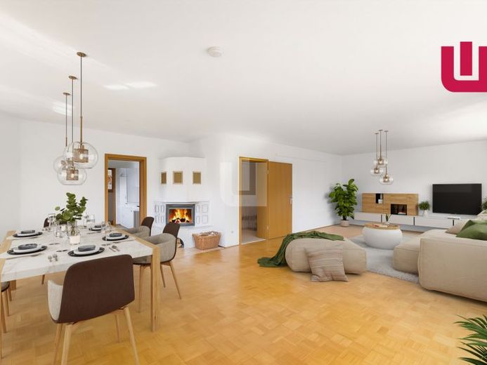 Erdgeschoss: Der großzügige, offen gestaltete Wohnbereich bietet den idealen Treffpunkt für die ganze Familie. Der Kamin sorgt für eine besonders behagliche Atmosphäre. An das Wohnzimmer angrenzend befindet sich der großzügige, offene Essbereich mit Zugang zur Terrasse. Die gepflegte Küche ist durchdacht mit einer angrenzenden Speisekammer gestaltet.