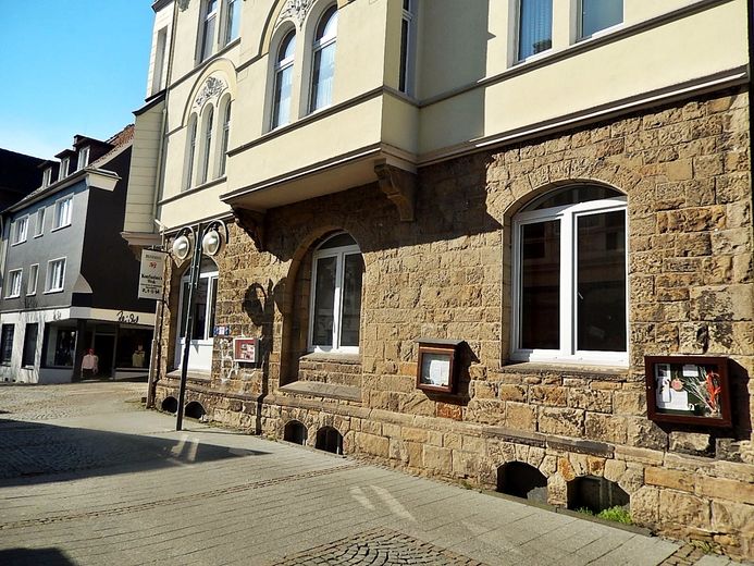 Das Ladenlokal befindet sich fast mittig in der Fußgängerzone der historischen Herdecker Altstadt.