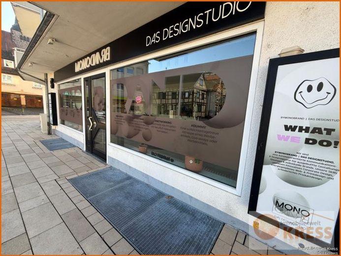 Ebenerdiges Ladenlokal oder Bürofläche in zentraler Lage von Schlüchterns neuem Stadtplatz. Großflächige Schaufensterflächen zeichnen dieses Mietobjekt aus. Im Inneren große Büro- oder Ladenfläche. Im hinteren nicht einsehbaren Teil befindet sich eine kleine Kücheneinrichtung welche vom Vormieter übernommen werden kann. Zudem befindet sich noch im rückwärtigen Bereich ein Mitarbeiter-WC.
