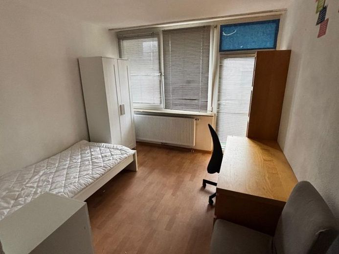 Es ist möbliert mit Bett, Tisch und Schrank und kann ab dem 15.10.2025 angemietet werden.
