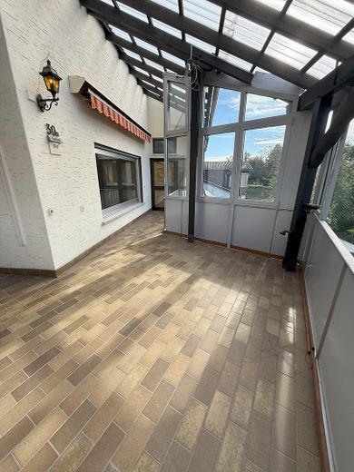 Das Wohnzimmer verfügt über einen Kamin, in der Küche ist eine Einbauküche verbaut. Hervorzuheben ist der Wintergarten mit zusätzlichem Balkon sowie der große Außenbereich für Gartenliebhaber.