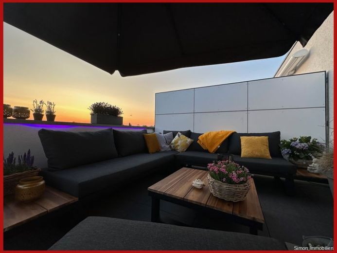 Von hier haben Sie einen direkten Zugang zur großen ca. 26 m² Sonnenterasse, auf der Sie den Feierabend entspannt ausklingen lassen können.