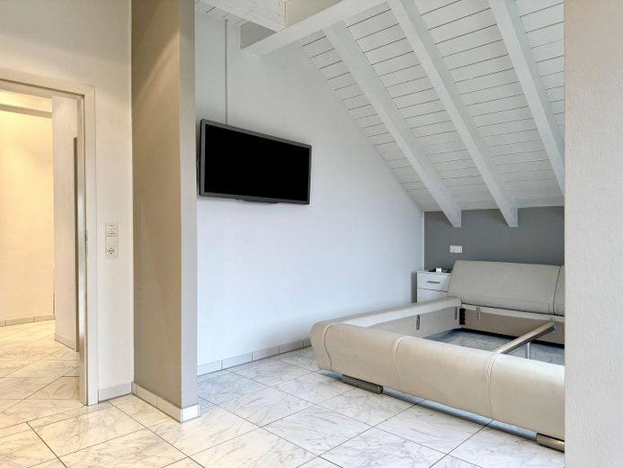 Auf insgesamt 107 m² Wohnfläche bietet das Objekt ein modernes und komfortables Wohnerlebnis. Zusätzlich steht ein weiterer, rund 28 m² großer Tageslichtraum zur Verfügung, der offiziell für Wohnzwecke genehmigt wurde und sich hervorragend als Homeoffice, Gäste- oder Fitnesszimmer eignet. Die Räume sind hell, gut geschnitten und mit pflegeleichten Fliesenböden ausgestattet, während eine Fußbodenheizung in der gesamten Wohnung für ein angenehmes Raumklima sorgt.