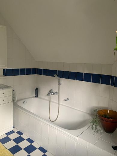 Badezimmer mit Wanne, Dusche, Waschbecken und WC inkl. Badmöbel