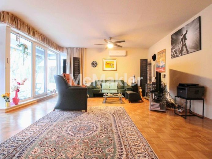 Mit ihren großzügigen Zimmern bietet diese Immobilie ihren Bewohnern ausreichend Platz für eine individuelle Gestaltung und Nutzung. Zu komfortablem Wohnen trägt die charmante Ausstattung der Wohnung bei, die u.a. eine Türsprechanlage, eine moderne Einbauküche, Parkettböden, Fußbodenheizung, teils klimatisierte Räume sowie elektrische Jalousien umfasst. Die rückwärtige Terrasse bietet ausreichend Platz und ist umlaufend, sodass Sie diese sowohl vom großen Wohn- und Esszimmer als auch vom Schlafzimmer erreichen können. Der Blick geht ins Grüne mit zahlreichen Bäumen, die einen natürlichen Sichtschutz bietet.