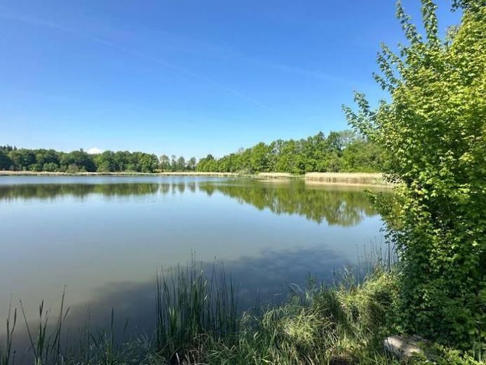 Wiesen, Felder, der Nahe Badeweiher mit idyllischen Badeplätzen bieten das malerische Umfeld dieses Anwesens.