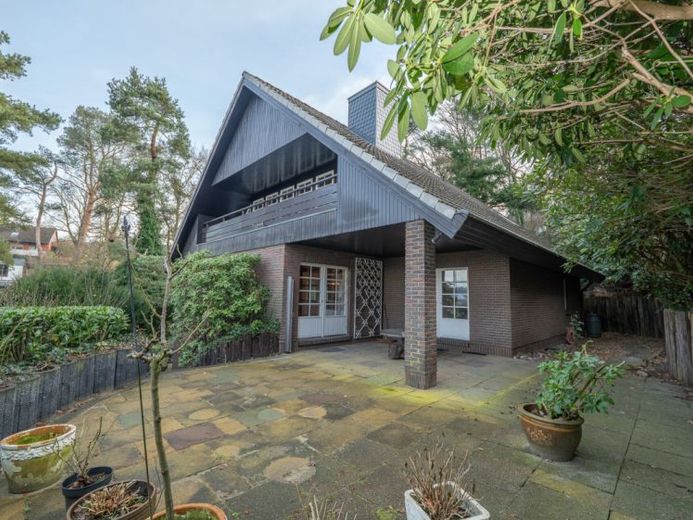 Auch der Außenbereich überzeugt auf ganzer Linie: Neben der großzügigen Auffahrt befindet sich auf Ebene des Erdgeschosses eine große, teilweise überdachte Terrasse. Von hier aus führen einige Stufen, vorbei an beeindruckenden Rhododendren, in einen weiteren Bereich des Hanggrundstücks, der sich hervorragend zum Spielen oder Gärtnern eignet.
