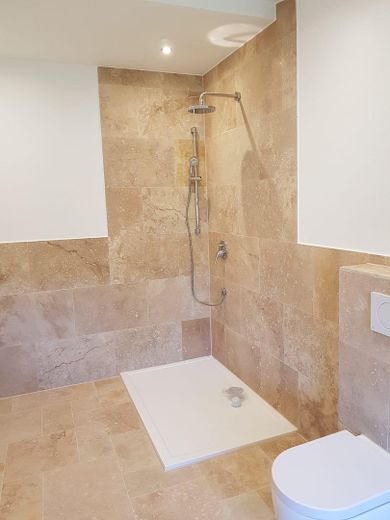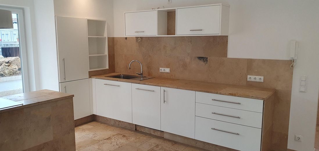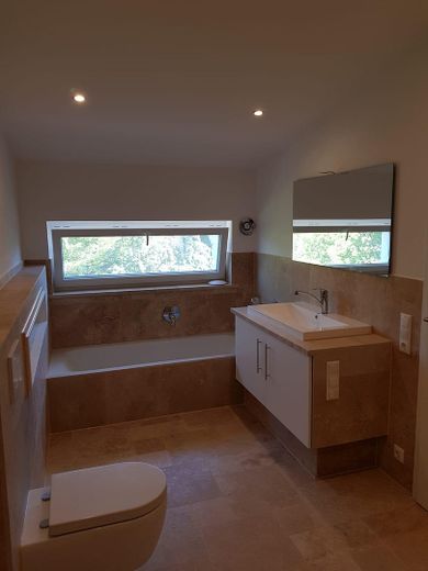 Echtholz Eiche Parkett, Naturstein Travertin, Badewanne , große Duschen, LED Beleuchtung, Sound System, Einbauküche, Div Einbaumöbel, Glasfaser