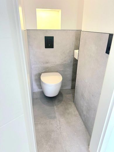 Die Wohnung präsentiert sich mit einem zeitlos elegantem Bad, das höchsten Ansprüchen genügt, sowie einem separaten Gäste-WC. Elektrik und Wasserleitungen entsprechen dem aktuellen Standard und wurden komplett erneuert, ergänzt durch hochwertige Fliesen in einem stilvollen Design und einen pflegeleichten Vinylboden in Holzoptik. Moderne Klingelanlage und dezente, schwarze matte Spots in der Decke setzen Akzente und sorgen für eine ruhige, stilvolle Beleuchtung.