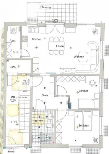 Die Wohnung befindet sich im Erdgeschoss des Drei-