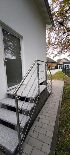 - Angelegte Terrasse aus WPC und Edelstahlgeländer