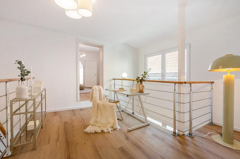 Im ersten Stock befinden sich drei Schlafzimmer, ein vielseitig nutzbares und helles Galeriezimmer sowie ein weiteres Duschbad.