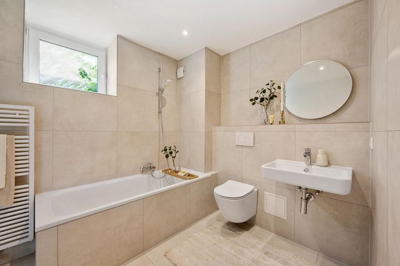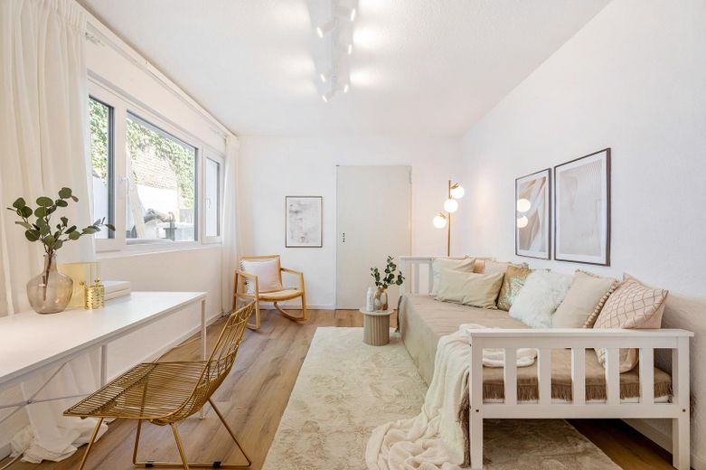 Das Erdgeschoss überzeugt mit einem großen Wohnzimmer, einer hellen Küche sowie einem frisch renovierten Badezimmer. Ein weiteres Zimmer kann flexibel als Gäste-, Arbeits- oder als altergerechtes Schlafzimmer genutzt werden. Hier schließt sich auch der uneinsehbare und sonnige Hofgarten mit großer Spielwiese und Terrasse an, in welchem Sie Zeit mit Ihren Lieben verbringen können.
