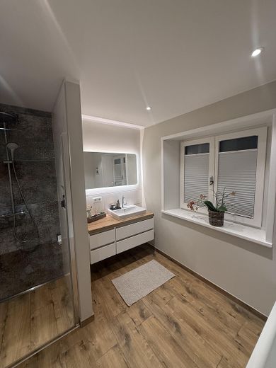 Die große überdachte Terrasse lädt zum Entspannen und Genießen ein, während die moderne Solaranlage mit 10 kW Speicher für niedrige Energiekosten sorgt. Eine kontrollierte Wohnraumlüftung sorgt zudem ganzjährig für ein angenehmes Raumklima.