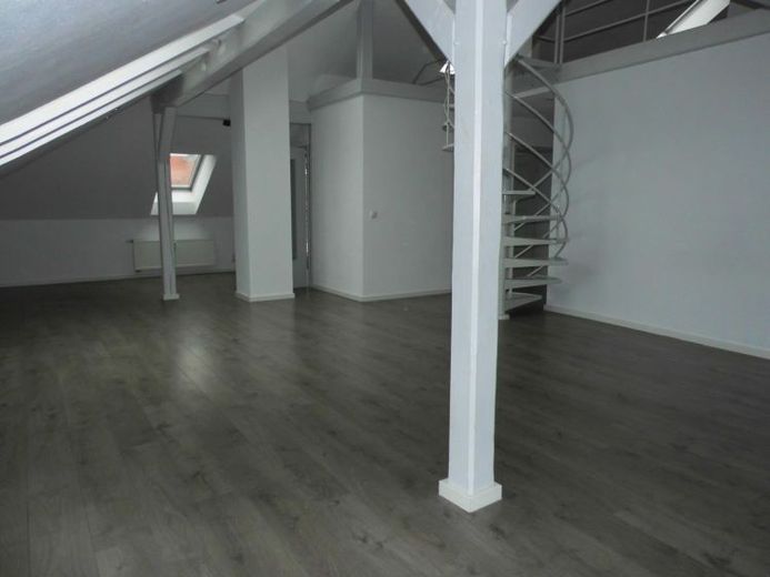 Diese Wohnung besteht aus großem Wohnzimmer mit Eßplatz, geräumiger Küche mit Eßplatz und Fenstern, Bad mit Wanne und Dusche, sep. WC, schöner Diele und einem Abstellraum/Speisekammer an der Küche. Die gewendelte Treppe zum DG führt zur offenen Galerie/Arbeits- oder Kinderzimmer mit Zugang zur Dachterasse. Alles ist gepflegt und kann sofort genutzt bzw. bezogen werden. Das Grundstück hat eine eigene Zufahrt mit anmietbaren PKW-Stellplätzen nach Bedarf (1 Stellplatz ist in der Kaltmiete enthalten!