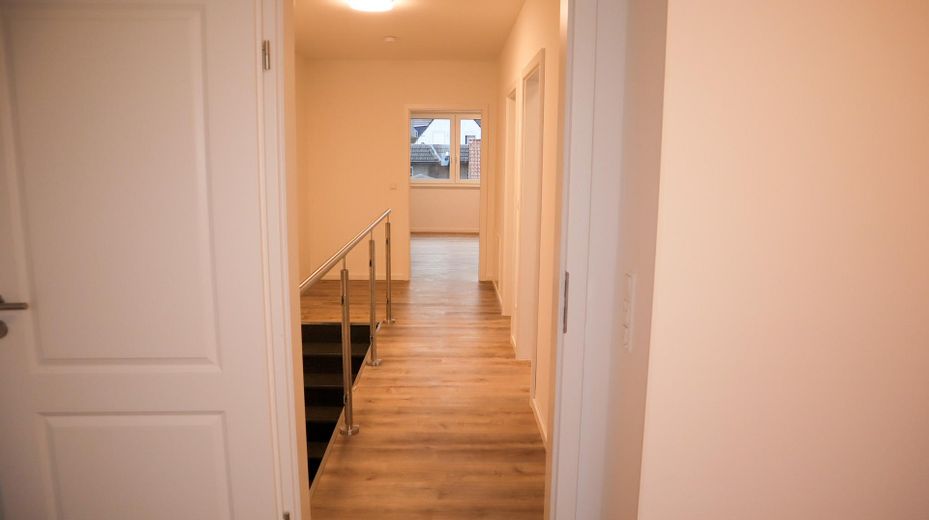 Über eine hochwertige Granittreppe gelangen Sie ins Obergeschoss mit drei großzügigen Schlafzimmern und einem modernen Familienbad mit Wanne und Dusche.