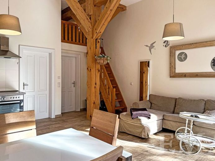 Die verschiedenen Wohneinheiten teilen sich fast identisch auf in einen großzügigen Wohn- und Essbereich mit Zugang zur Terrasse, eine offene Küche mit Einbauküche sowie ein modernes Badezimmer mit bodengleicher Dusche. Zwei der Einheiten verfügen über ein weiteres Zimmer sowie einen Schlafboden. In den anderen beiden Einheiten befinden sich zwei weitere Zimmer. Die Wohnfläche der verschiedenen Wohnungen variiert zwischen ca. 42 m² und ca. 52 m². Die Raumhöhen betragen ca. 4,30 m.