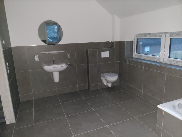 Vervollständigt wird dieses Haus durch ein Vollbad im Obergeschoss, mit ebenerdiger Dusche und großer Badewanne.