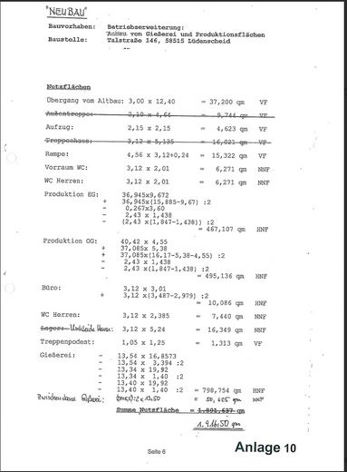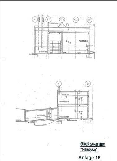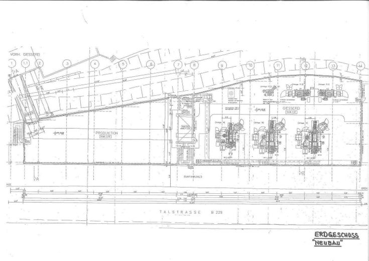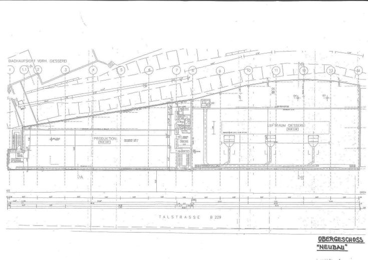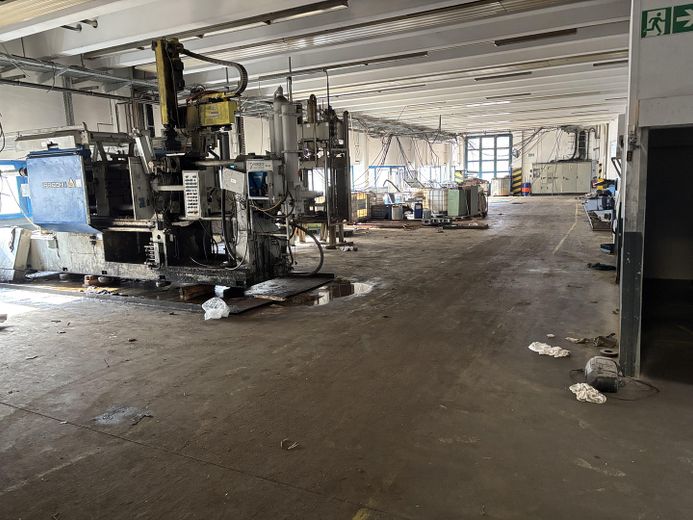 Das Objekt wurde zuvor als Aluminiumguss-Fabrik genutzt. Vorhanden sind ein Kran sowie die Möglichkeit der Durchfahrt. Im Obergeschoss befinden sich Büro-, Sozialräume und eine Werkstatt.