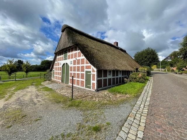 Die Immobilie stammt aus dem Jahre 1893 und wurde im Jahre 1994 umfangreich renoviert. Das Haus verfügt über eine größzügige Wohn- und Nutzfläche. Aufgrund der großen Fensterfronten und der freiliegenden Holzbalken bieten die Zimmer eine freundliche und gemütliche Atmosphäre. Die Immobilie verfügt über ein Bad mit Badewanne, ein Gäste-WC und einer Sauna. Die Gasheizung wurde im Jahre 2017 erneuert und der Dachfirst im Jahre 2023. Das mit Reet gedeckte Dach wurde zu dem Zeitpunkt auch generalüberholt. Die Immobilie bietet die Möglichkeit von mehreren Pferdeboxen, Lagerflächen oder einer großzügigen Werktstatt und bietet zu dem noch eine größere Ausbaureserve.