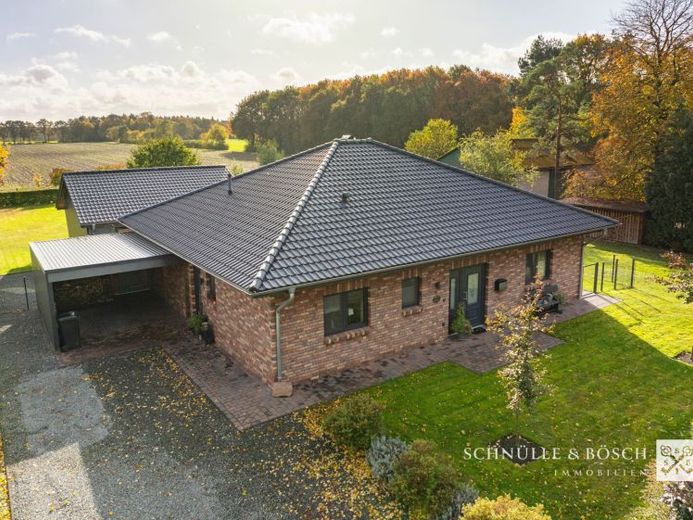Ihr neues Zuhause wartet auf Sie! Dieser barrierefreie Walmdach-Bungalow aus dem Jahre 2017 bietet Ihnen nicht nur modernen Wohnkomfort, sondern auch eine ruhige Lage in idyllischer Umgebung. Auf einer großzügigen Grundstücksfläche von 1.550 m² finden Sie eine Oase der Entspannung und ausreichend Möglichkeiten zur freien Entfaltung.