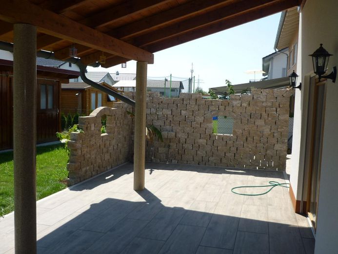 - Hausterrasse mit großformatigen Fliesen