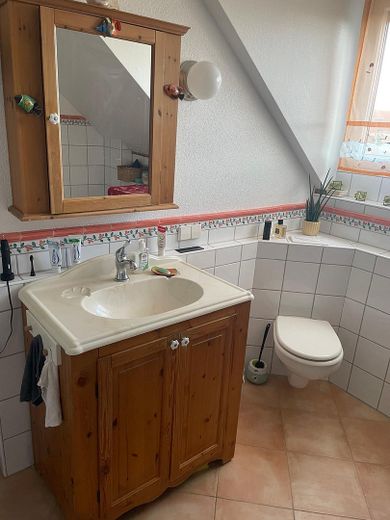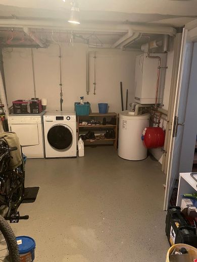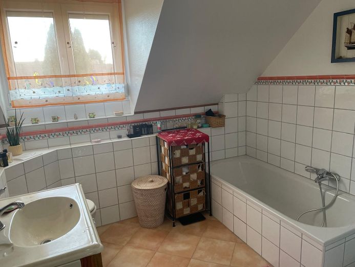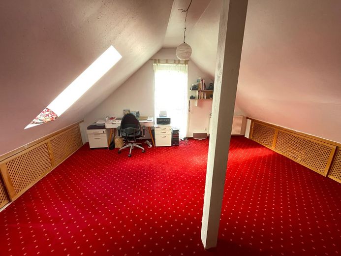 Es verfügt über ein geräumiges Badezimmer mit Badewanne und Dusche sowie ein zusätzliches Gäste-WC. Das Studio ist ausgebaut. Im voll unterkellerten Bereich finden Sie einen Wasch- und Heizungskeller, einen Abstellraum sowie einen großzügigen Wohnraum.