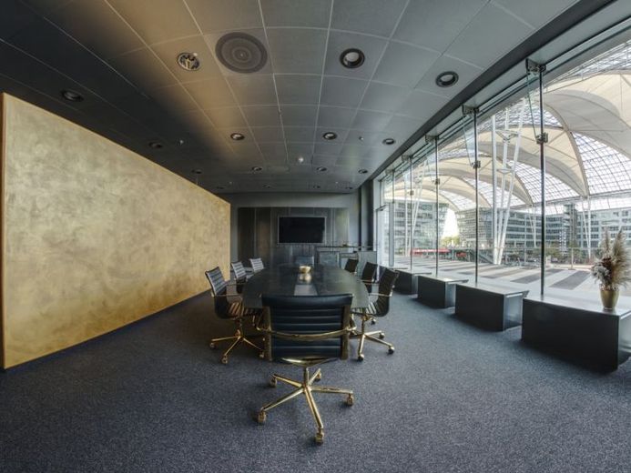 Die hier angebotene Businesslounge am Münchner Flughafen liegt in einem markanten Gebäude zwischen den Terminals 1 und 2 im Flughafen München, 30 km nördlich der Stadt. Dieser Umstand bittet eine Gelegenheit ihre Firma in einem internationalem Ambiente zu präsentieren. Überschaubare Kosten und volle Planbarkeit ihrer Meetings.