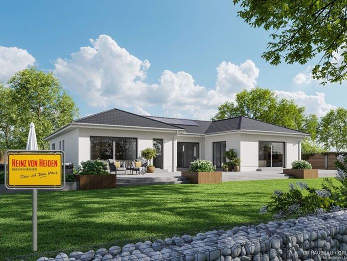 Mit jedem m² versprüht dieses Haus Lebensfreude und Exklusivität. Dieser Bungalow hat ein besonderes Highlight zu bieten: einen 10 m² großen überdachten Außenbereich. Freuen Sie sich auf schöne laue Sommerabende mit Blick auf Ihren Garten. Egal, ob Sie sich bei den Entscheidungen für die Ausgestaltung Ihres Traumhauses von Ihrem Bauchgefühl, dem Herz oder dem Kopf leiten lassen, Ihr persönlicher Heinz von Heiden Bauherrenfachberater steht Ihnen von der Planung bis zur Schlüsselübergabe beratend zur Seite. Bauen Sie Ihren Winkelbungalow mit 130 m² nur mit unseren Experten! Die Abbildung zeigt eine Ausstattungsvariante.